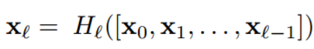 - 이전 layer x0, x1, ..., xl-1가 다 결합되어 H()연산 수행. H()함수는 BN, ReLU, 3x3 Conv이고 pre-activation resnet의 순서를 따름.