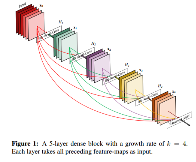 - growth rate : 각 layer가 전체에 어느정도 기여 할지 결정(l번째 layer input : k0 + k*(l-1))