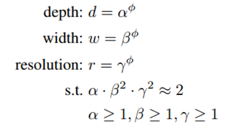 - FLOPs는 너비와 해상도에 따라 제곱배 상승. FLOPs = (α,β^2,γ^2)^2 (논문에서는 α,β^2,γ^2=2로 제한)