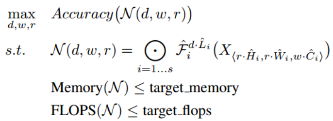 - 각 layer에서 수행하는 연산(f)을 고정하고 layer수, 채널수, 입력 이미지 크기에만 집중하여 search space가 감소.