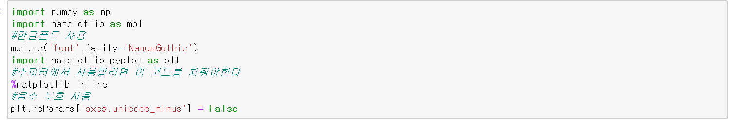 - mpl.rc('font', family='NanumGothic') 코드를 실행하면 한글 폰트 사용이 가능하다.