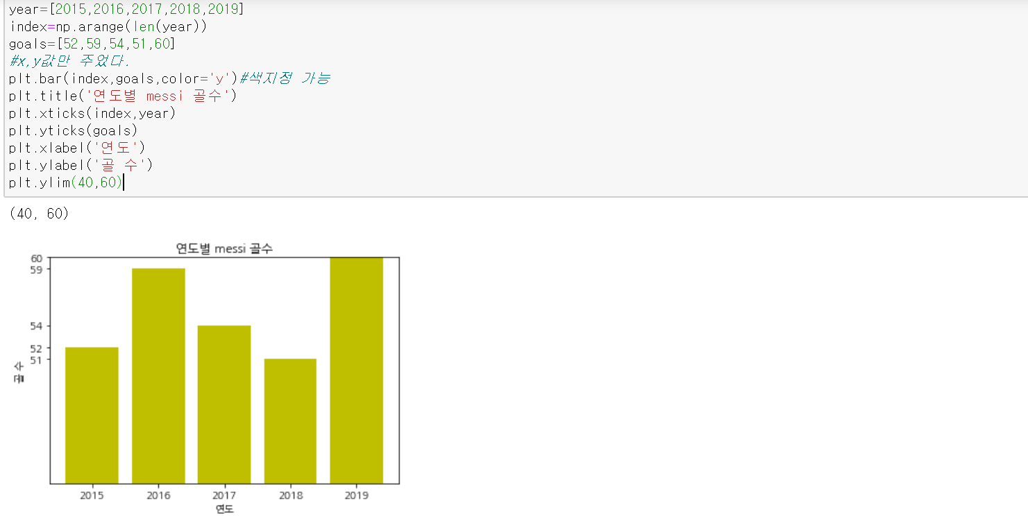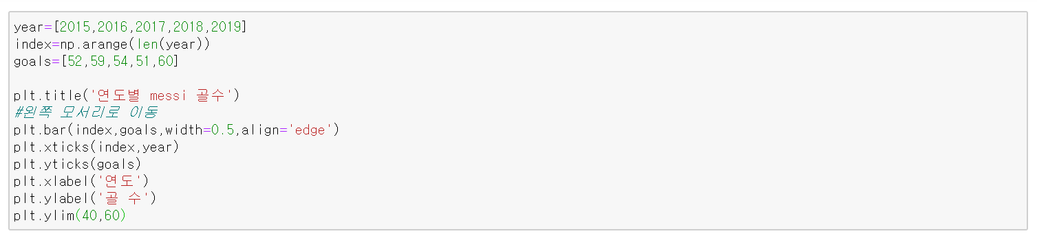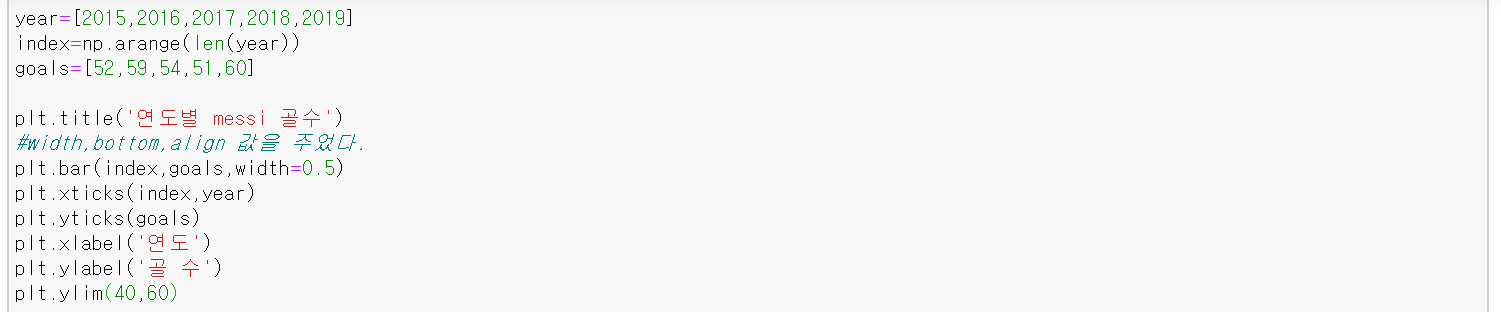 - plt.bar(x,y,기타설정들)
