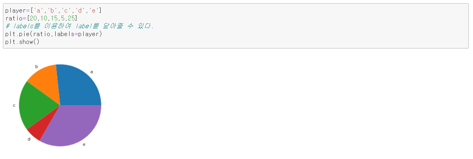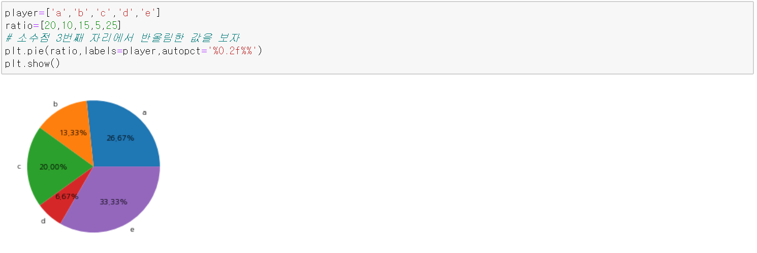 autopct를 통해 각 부분이 전체의 몇 퍼센트를 차지하는지 나타낼 수 있다.
