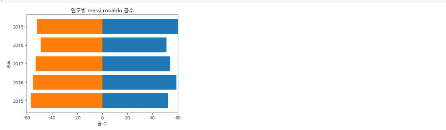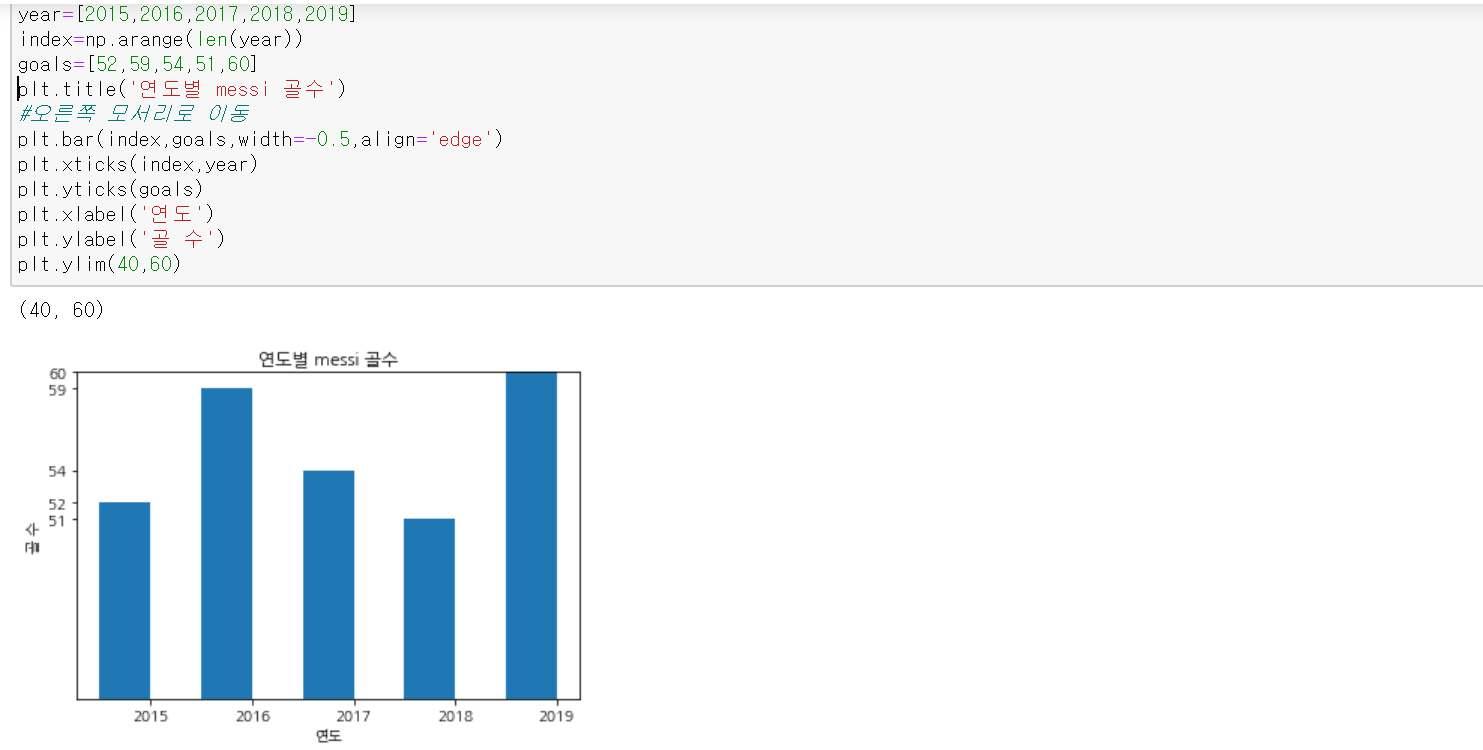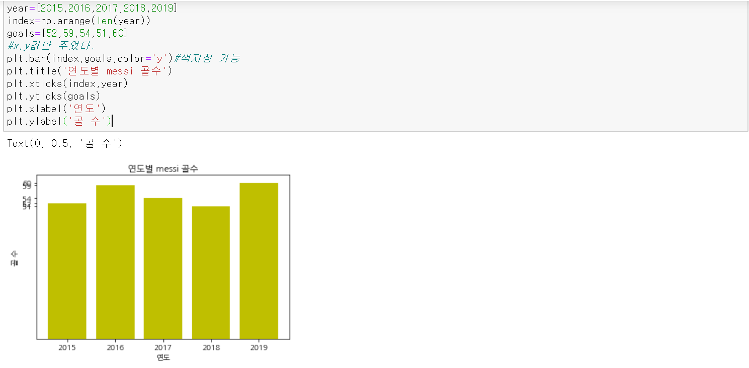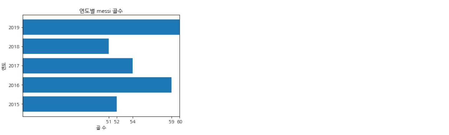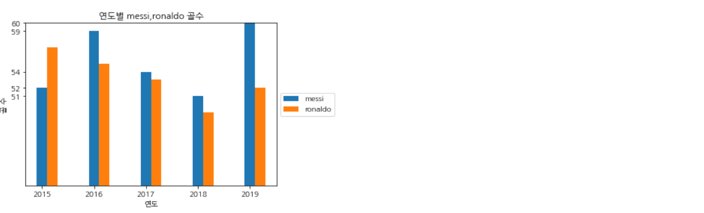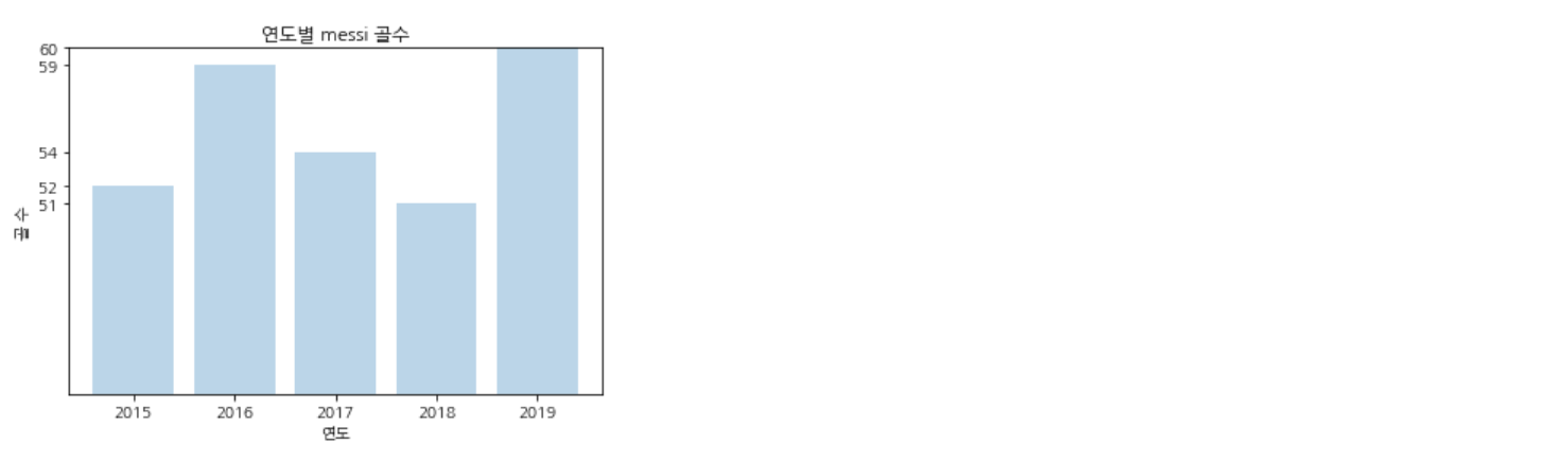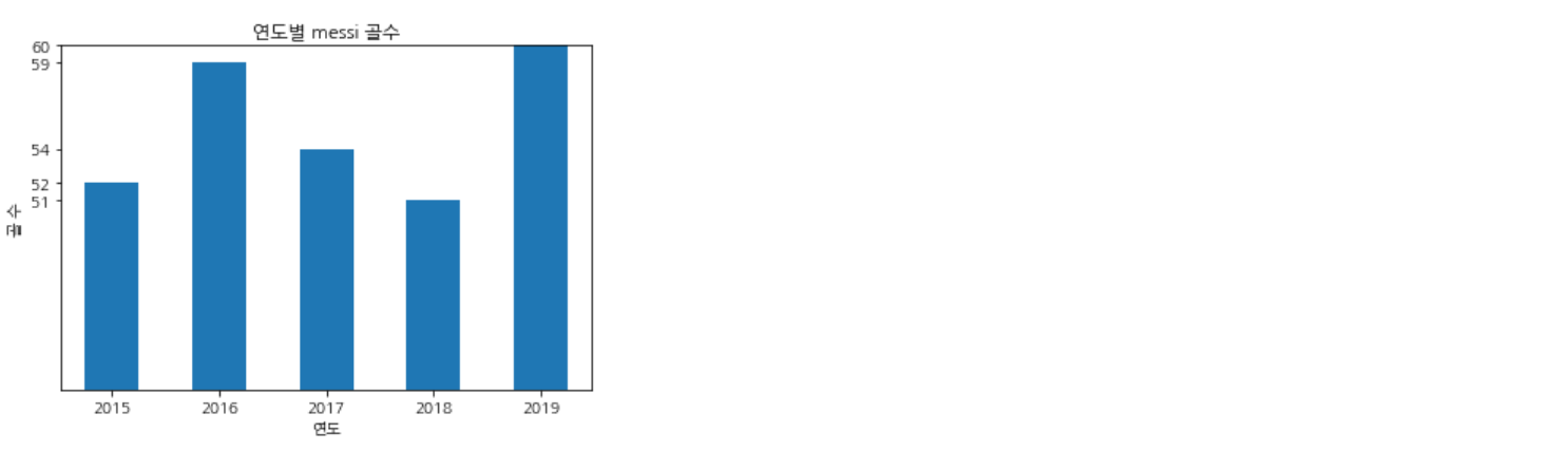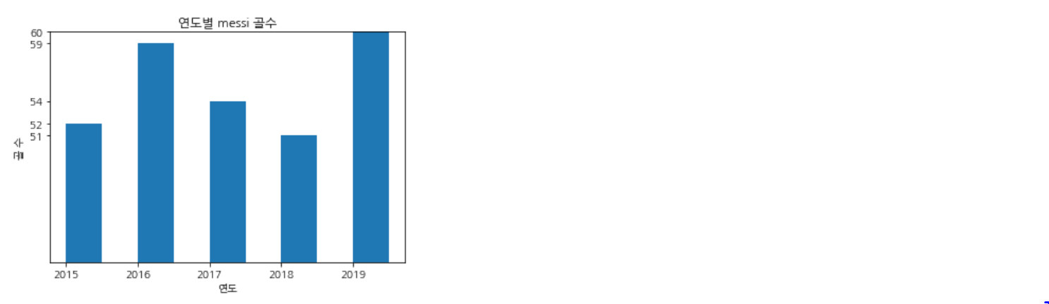 똑같이 연도별 messi의 골수를 막대그래프로 나타내 보자