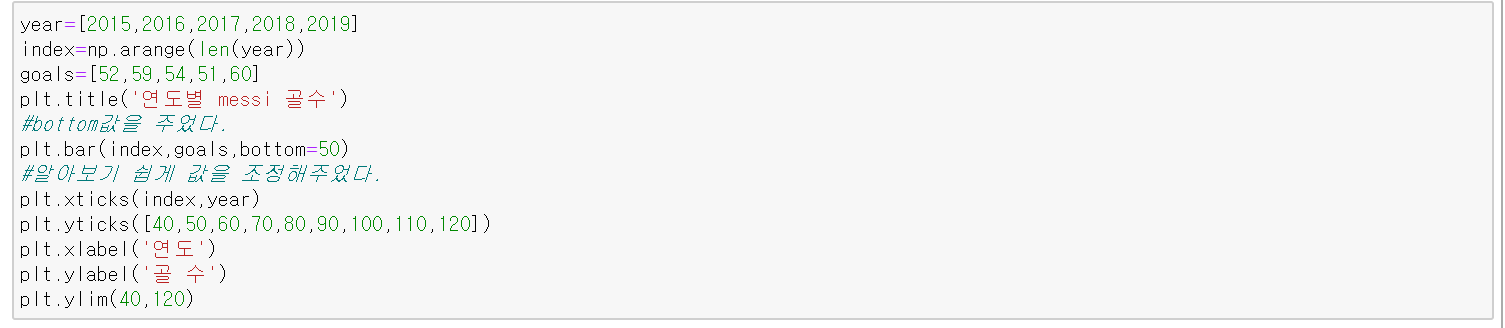 bottom을 이용해 막대가 어디서 시작할지 정해준다 defalut값은 None(0)이다