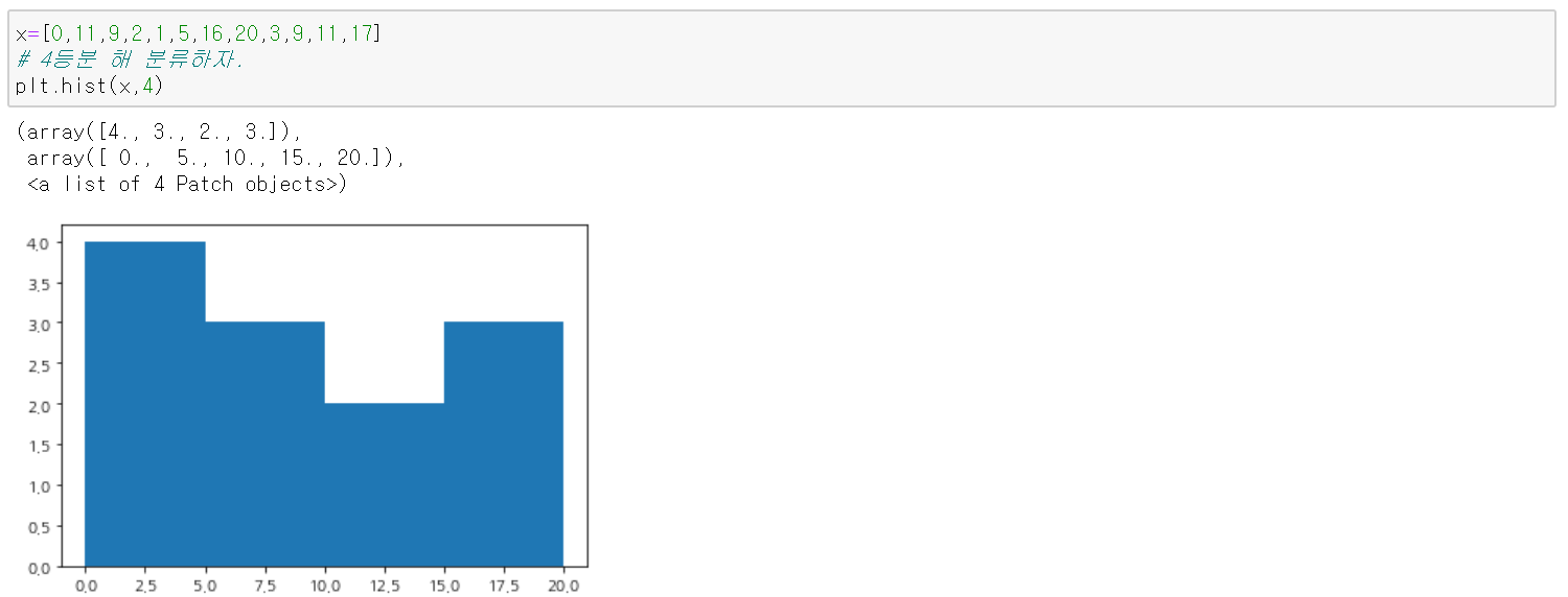 숫자 4는 bins값으로 전체를 몇 등분할지 정해준다.