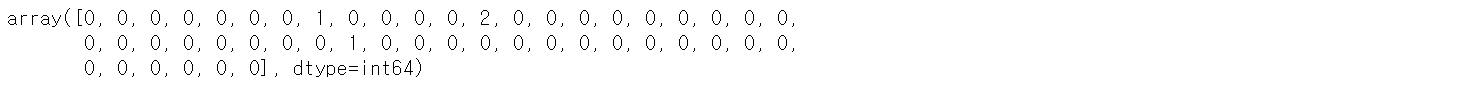 numpy를 이용해 각 단어가 몇 번 사용되었는지 대략 알아보자.